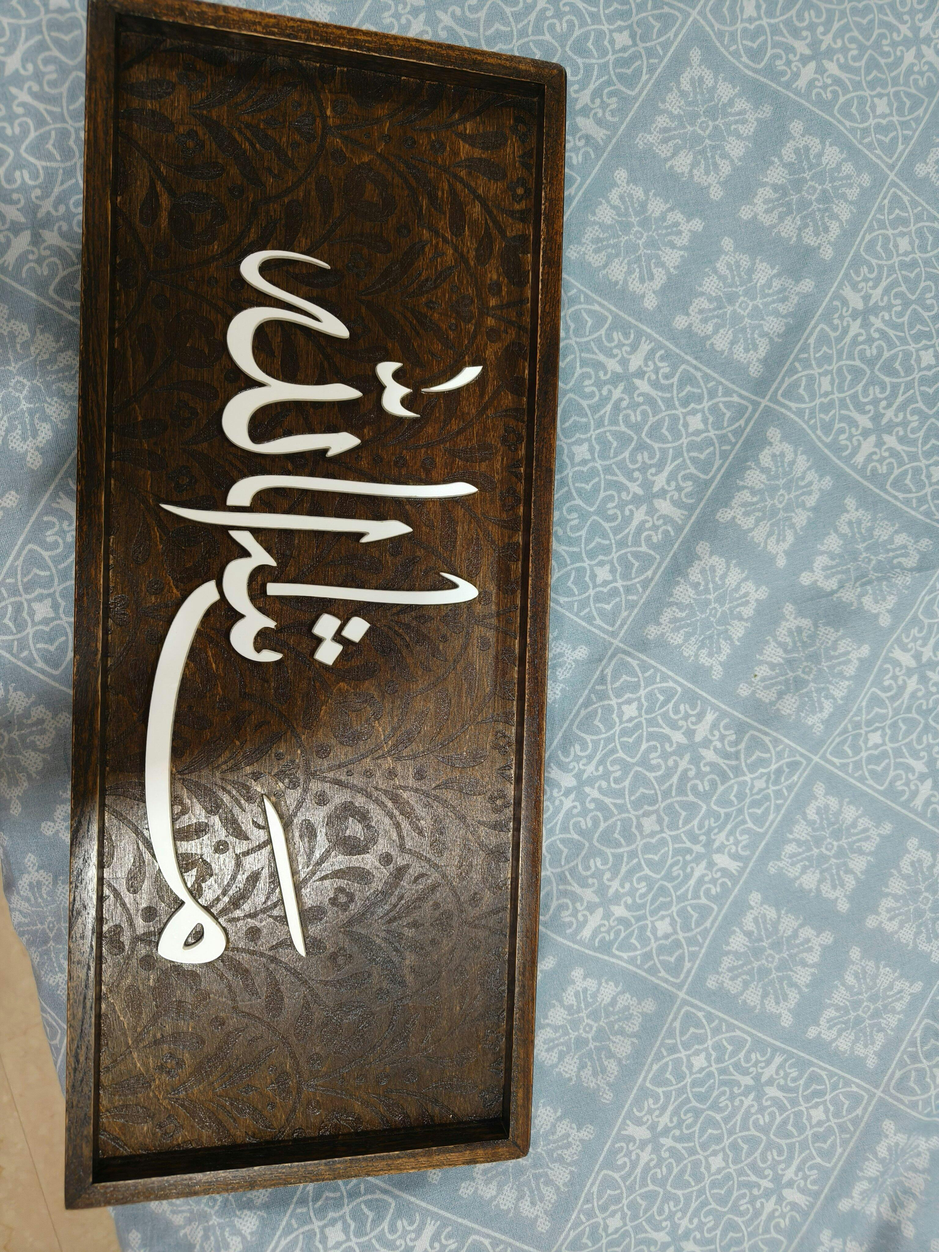 Add a unique touch to your home with our Ornate pattern Sign! Each namesign is hand and machine made with laser etched motifs and hand finished with walnut background on premium birch ply and a teak wood border. Show off your style with this one-of-a-kind sign.